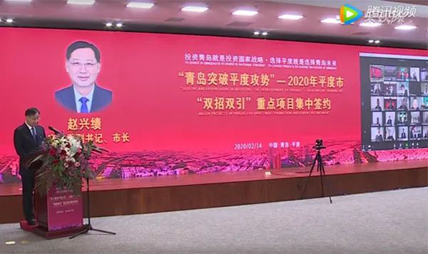 2020年2月14日上午,“青岛突破平度攻势”—— 2020年平度市“双招双引”重点项目集中签约仪式在平度市市民中心举行。青岛市“突破平度攻势”相关责任部门、平度市级领导、镇街园区项目签约人在主会场参加签约仪式,平度市委书记谢兆村,市委副书记、市长赵兴绩等领导出席。