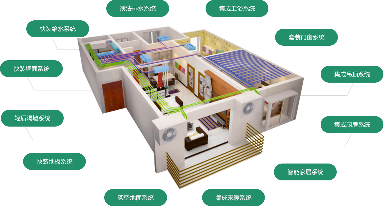 装配式装修项目施工现场无粉尘、无噪音等污染,可做到节水、节材、减少建筑垃圾。节水100%,降噪100%,节能降耗70%